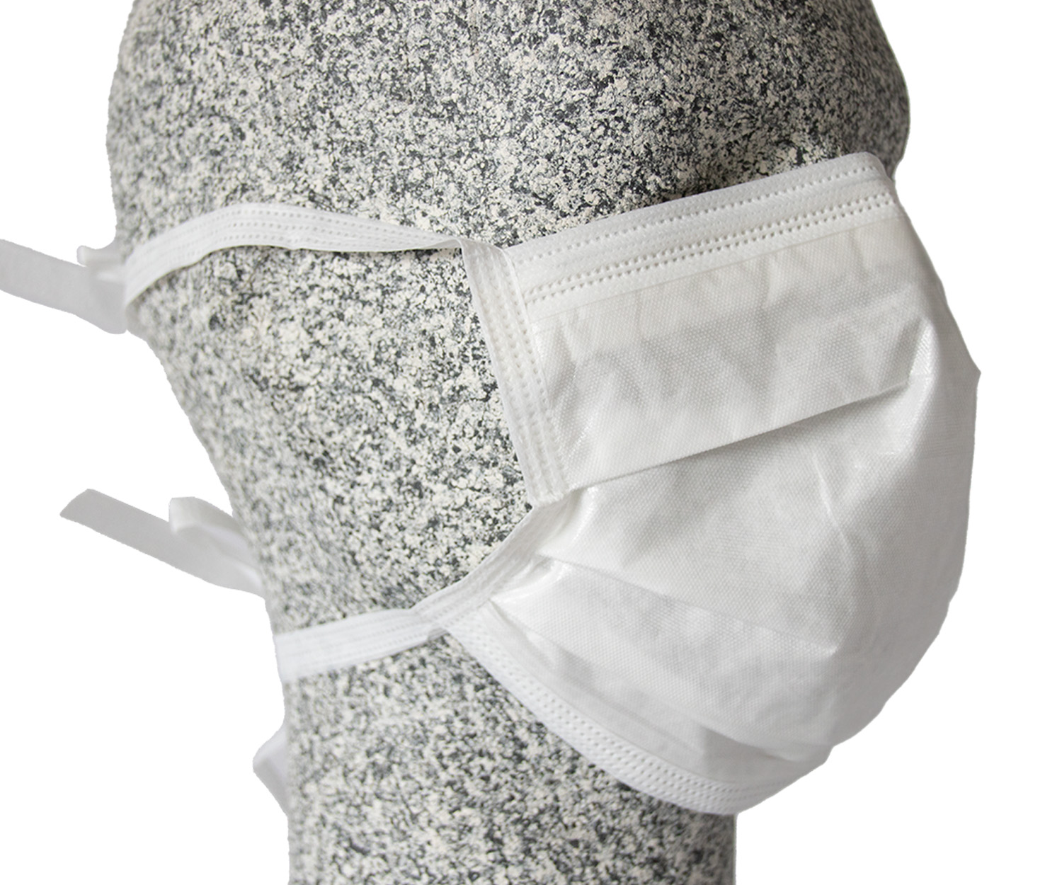 The disposable mouthguard is 4-ply and reinforced with hexagonal polyethylene mesh. The splash-proof and anti-fog mask consists of one layer of polyethylene mesh and three layers of non-woven fabric, which is folded together to form a "sandwich".