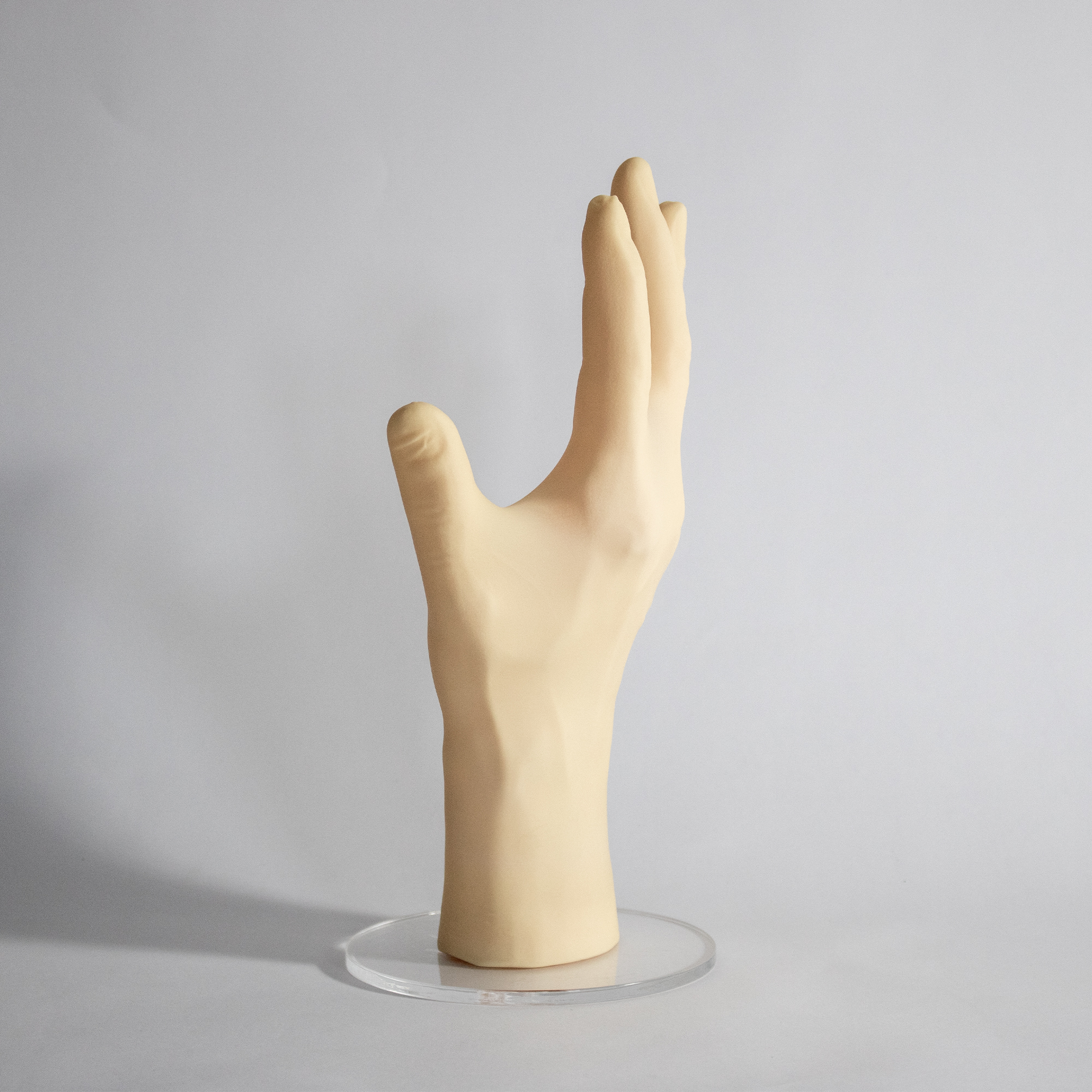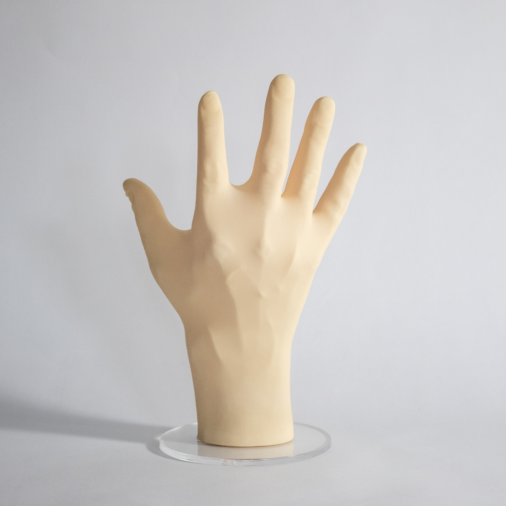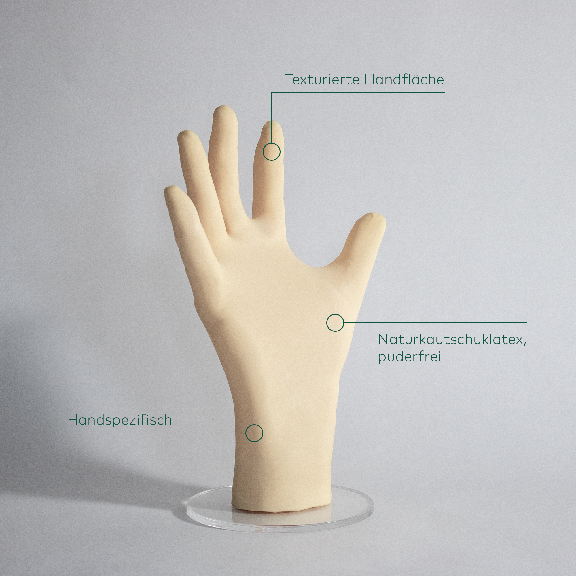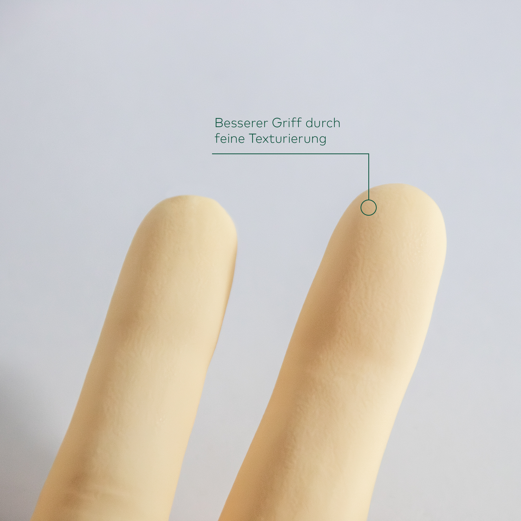 The "Latex cleanroom glove SimTec® LG030-S" Is a gamma sterilised glove with textured fingers and palm.
