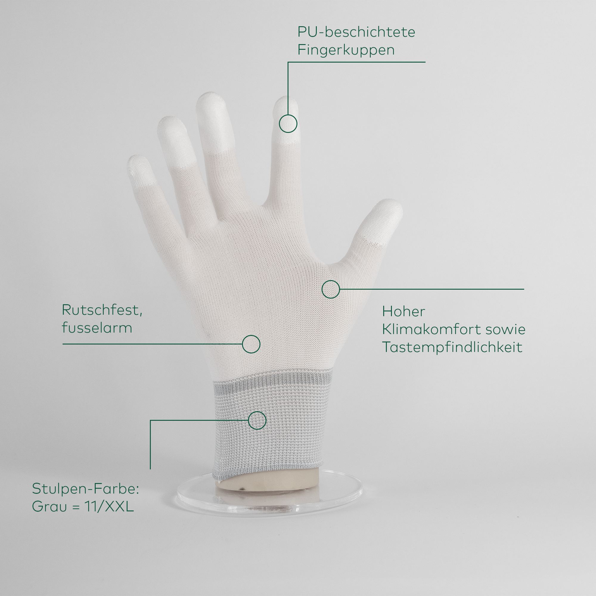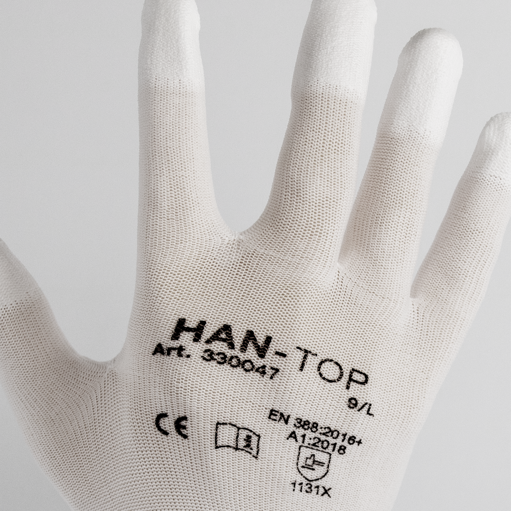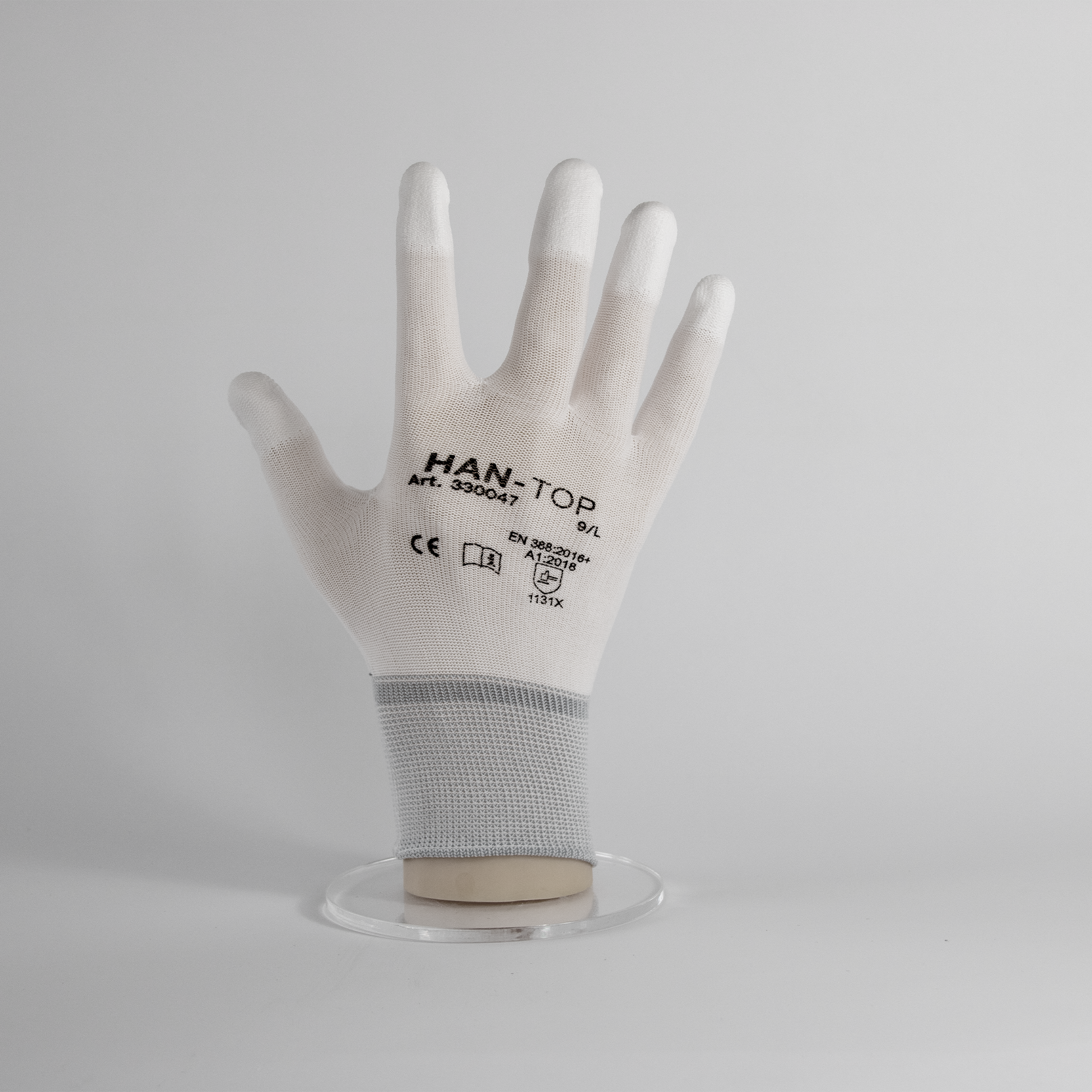 The "Han-Top", IAB's own brand, is the perfect glove for the assembly of very small parts. The glove is made of high-quality, seamless nylon. The coated fingertips provide a better grip without sacrificing breathability.