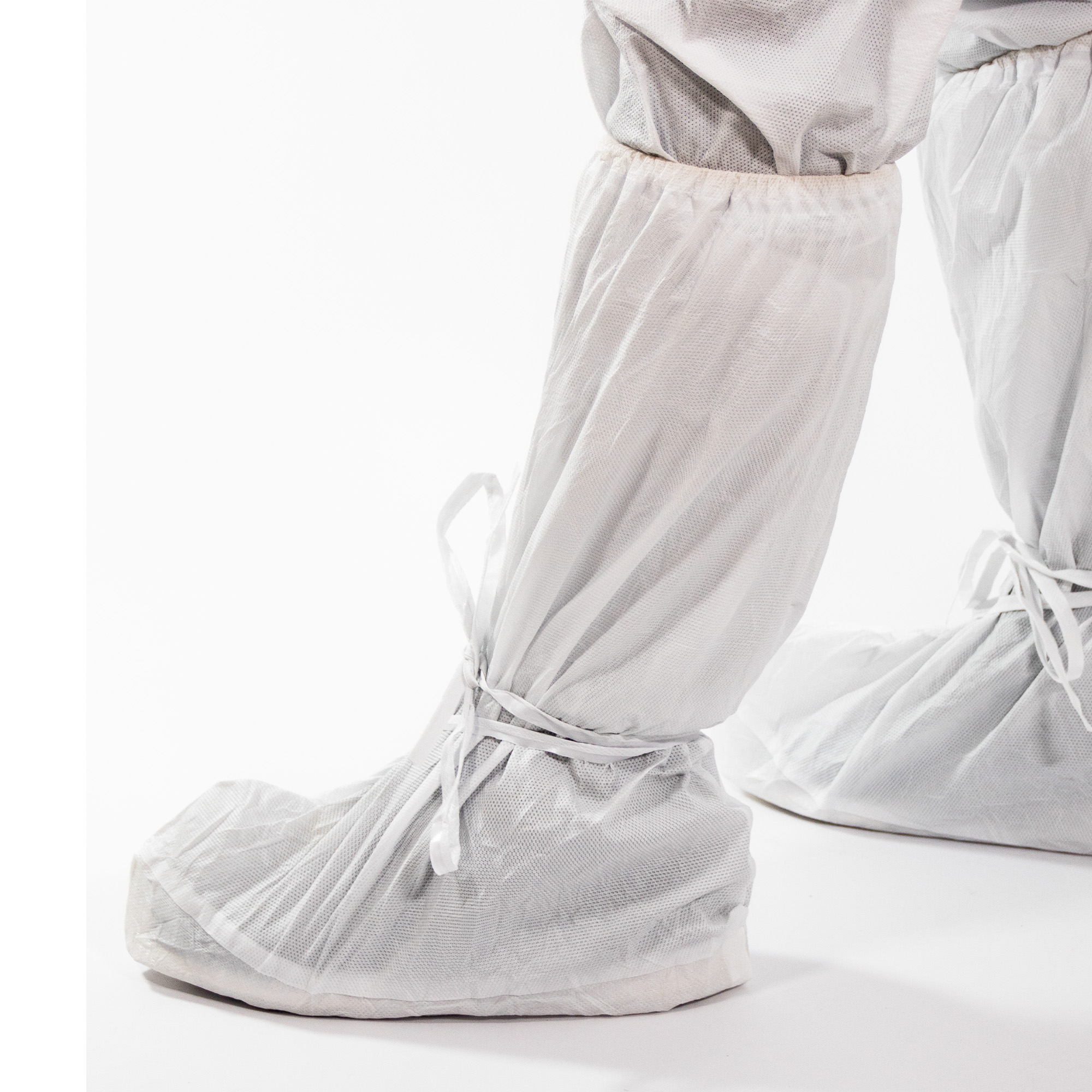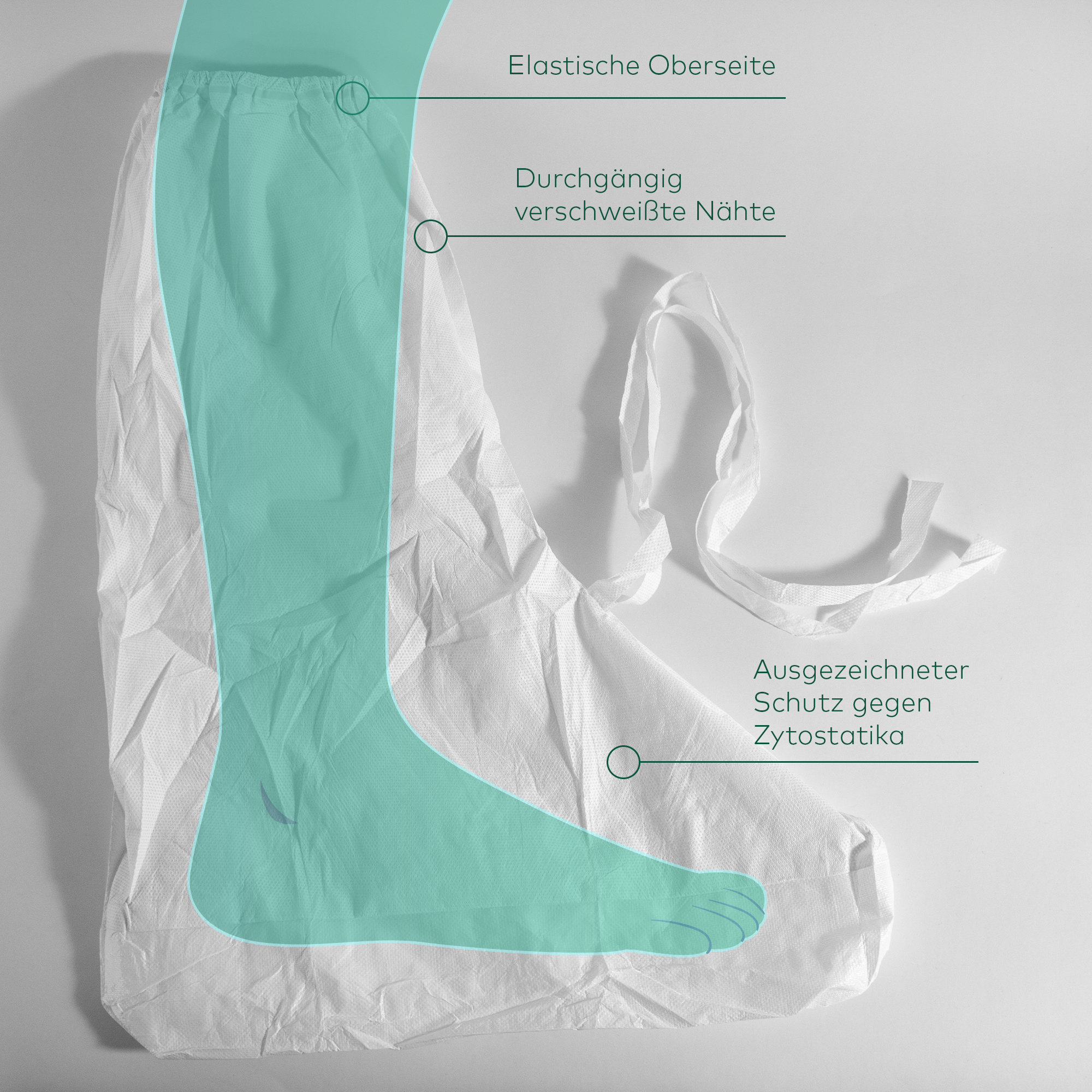 The high "Overboots SimSafe® SOB06-S" are made of 65% polyethylene Bicomponent Fibre, 35% Polyester + PU coating with slip-resistant sole and rubber cuffs (PPE CAT. 1) and offer excellent protection against hazardous substances such as cytostatics, high wearing comfort and best user-friendliness.